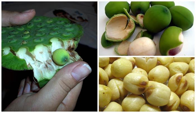 ลอกเปลือกออกจากเมล็ด โดยไม่ดึงเยื่อหุ้มเมล็ดและดีบัวออก กินสดๆทั้งเมล็ด จะทำให้ร่างกายได้รับวิตามิน แร่ธาตุ และสารต้านมะเร็งซึ่งอยู่บริเวณเยื่อหุ้มเมล็ด และดีบัวในปริมาณสูง